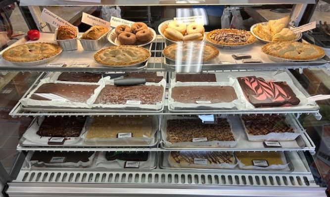We specialize in a vast array of Door County products: jams, jellies, fruit butters, salsas, dips, cheese, mustards, ciders, and micro brews, wines, and liquor. We offer a variety of homemade pies, donuts and a dozen flavors of fudge. Hand dipped ice cream, T-shirts, sweatshirts, kitchen items, and outdoor furniture. You can create your own gift basket or we have ready to purchase baskets. We have cherries frozen, dried or chocolate covered, and fresh fruits in season. Open daily May 1 to October 31 from 9-4, November & December – Friday through Sunday 10-4. Stop in and enjoy a glass of wine or beer while you shop or sit on our porch!