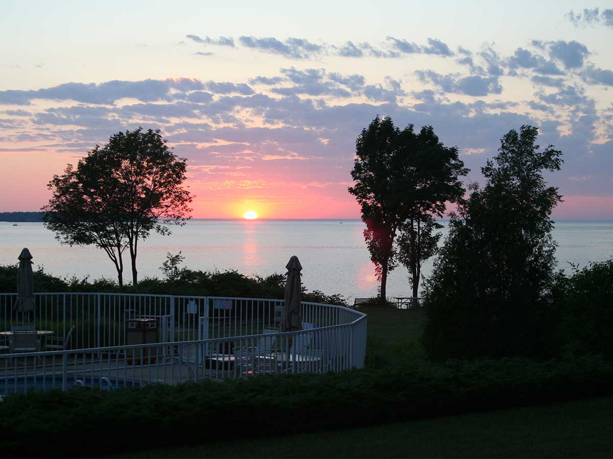Located 2.5 miles from downtown Sturgeon Bay, the Bay Shore Inn is the perfect place to unwind from it all. Established in 1922 as a seasonal resort, the Bay Shore Inn was transformed into year round condominium buildings in 1991. This family friendly resort with breath-taking sunsets sits across the bay from Potawatomi State Park. Our spacious one and two bedroom water view suites include: king size beds, double whirlpool tubs, fully equipped kitchens, living and dining room areas with a private balcony or patio. Relax on our private sand beach, enjoy shorefront grills and picnic areas, cruise the bay in complimentary kayaks and stand up paddleboards, swim in the indoor and outdoor heated pools, play a round of tennis or try your luck on our basketball court. Several golf courses are located within minutes. Amenities include-Air Conditioning, Dishwasher, Microwave, Telephone, Hair Dryer, Laundry Room, HBO, High Speed Internet Access, Cribs, Playground, Fitness Center, Game Room, Meeting Rooms-Conventions, Fire Pit, Fireplace-Common Area, Packages including Massages, Water View and Waterfront Suites.